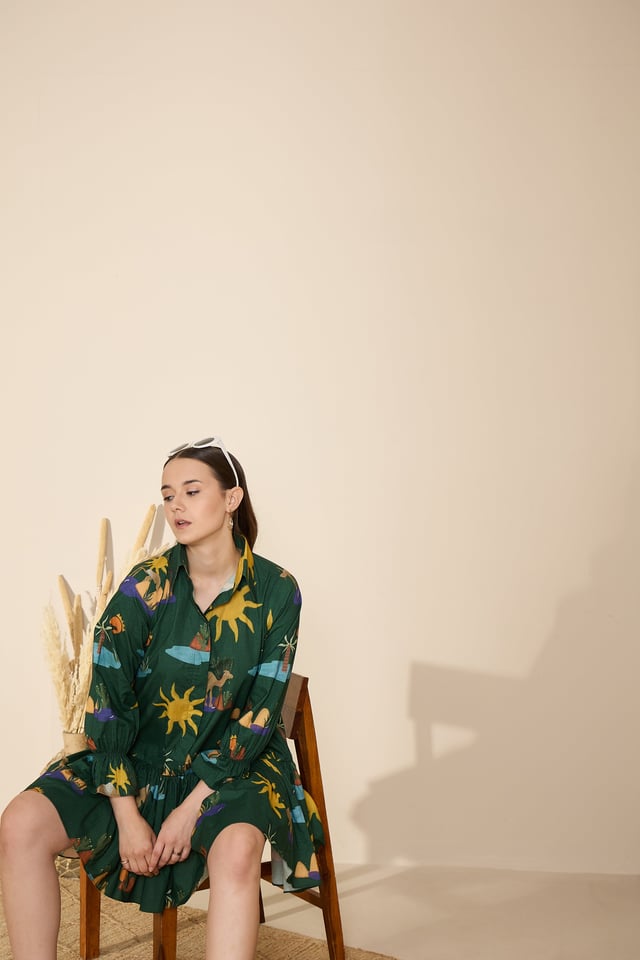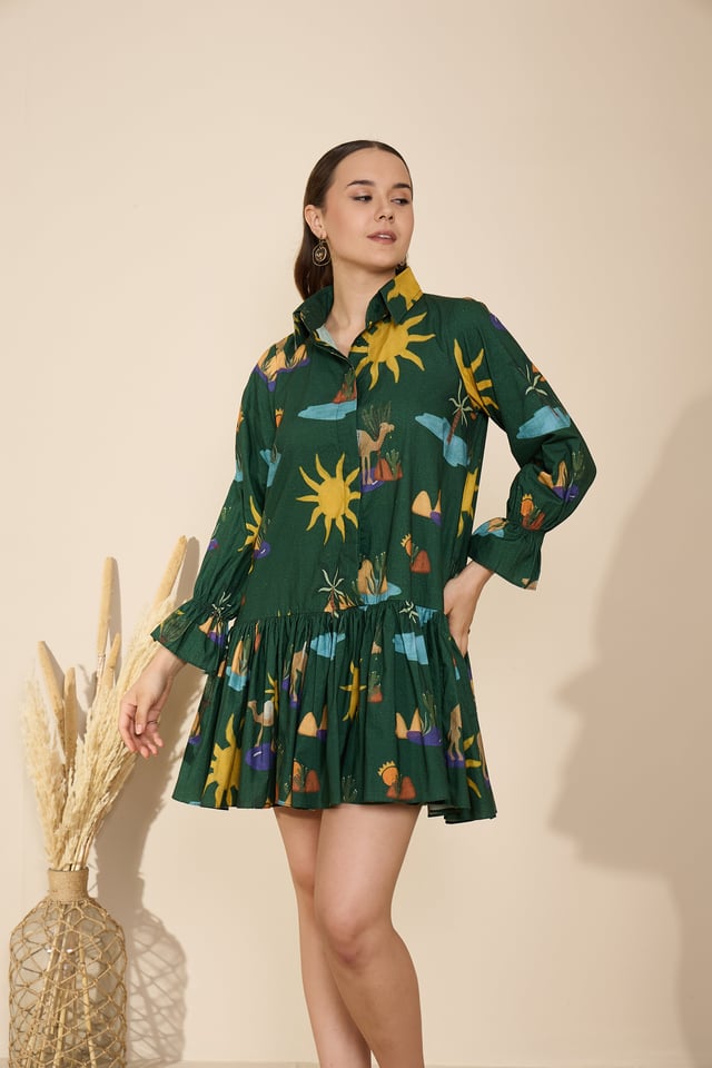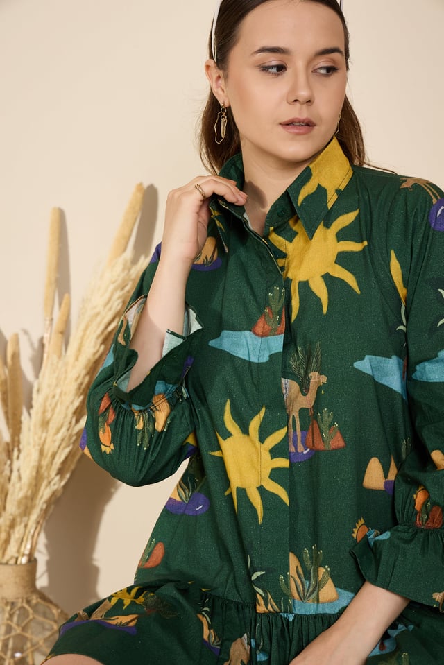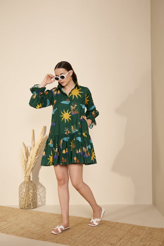 Autumn Dress in Hidden Spring Print (Green)