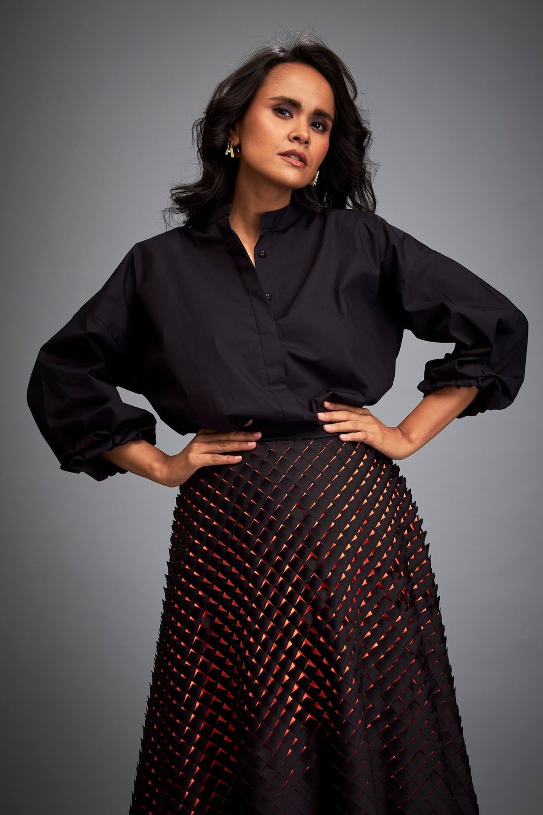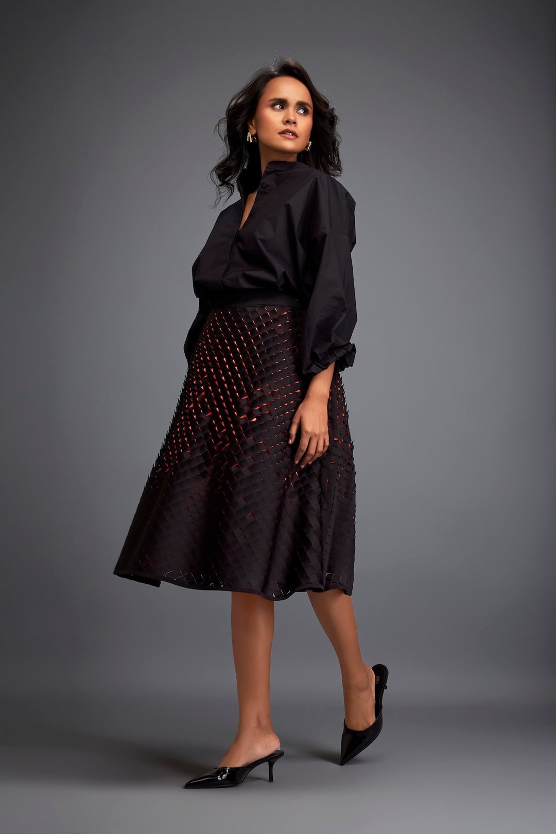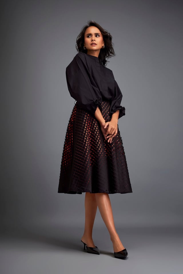 A-Line Skirt with 3d Geometric Pattern