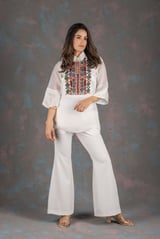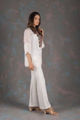 White Aztec Embroidered Co-ord Set with Flared Pants