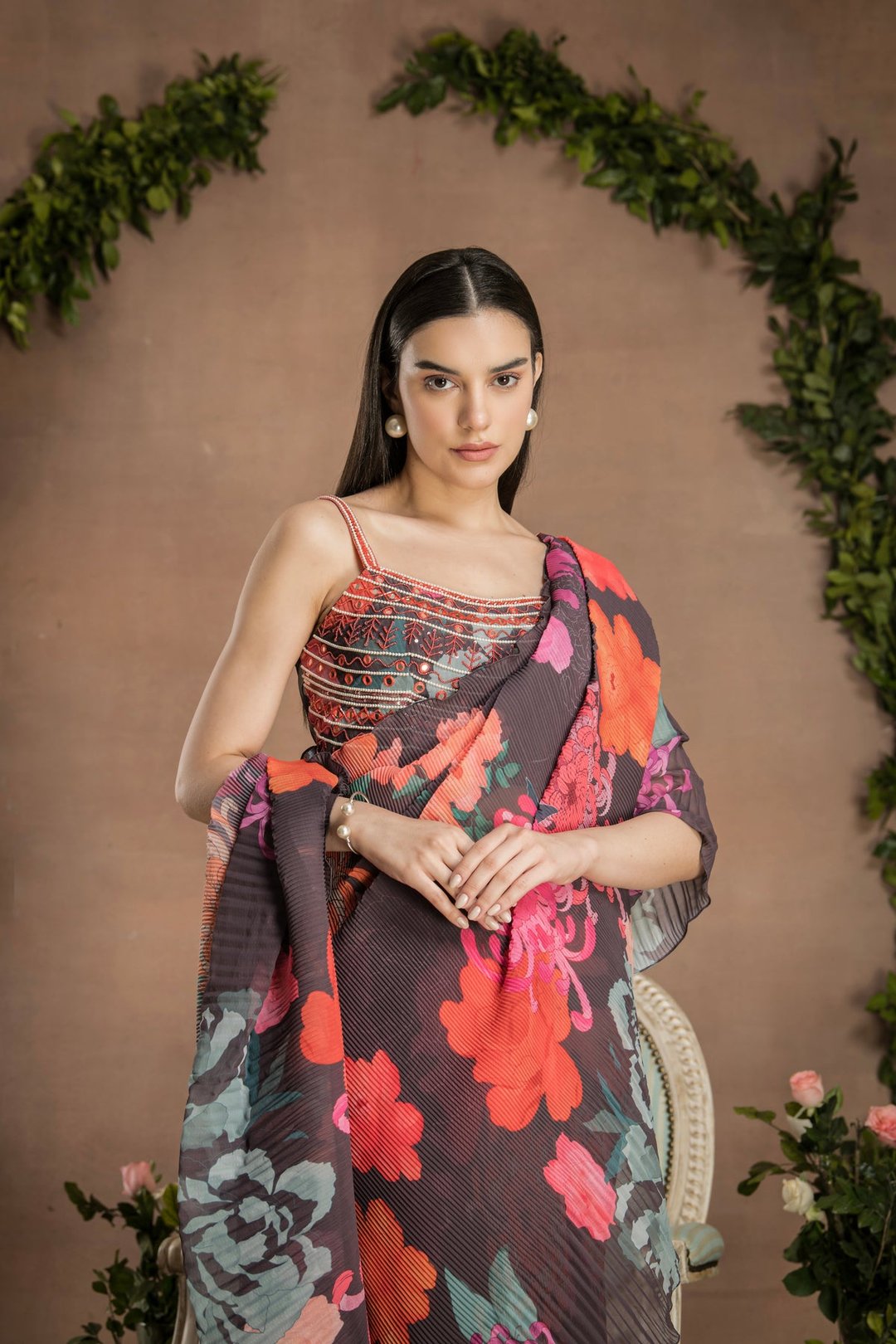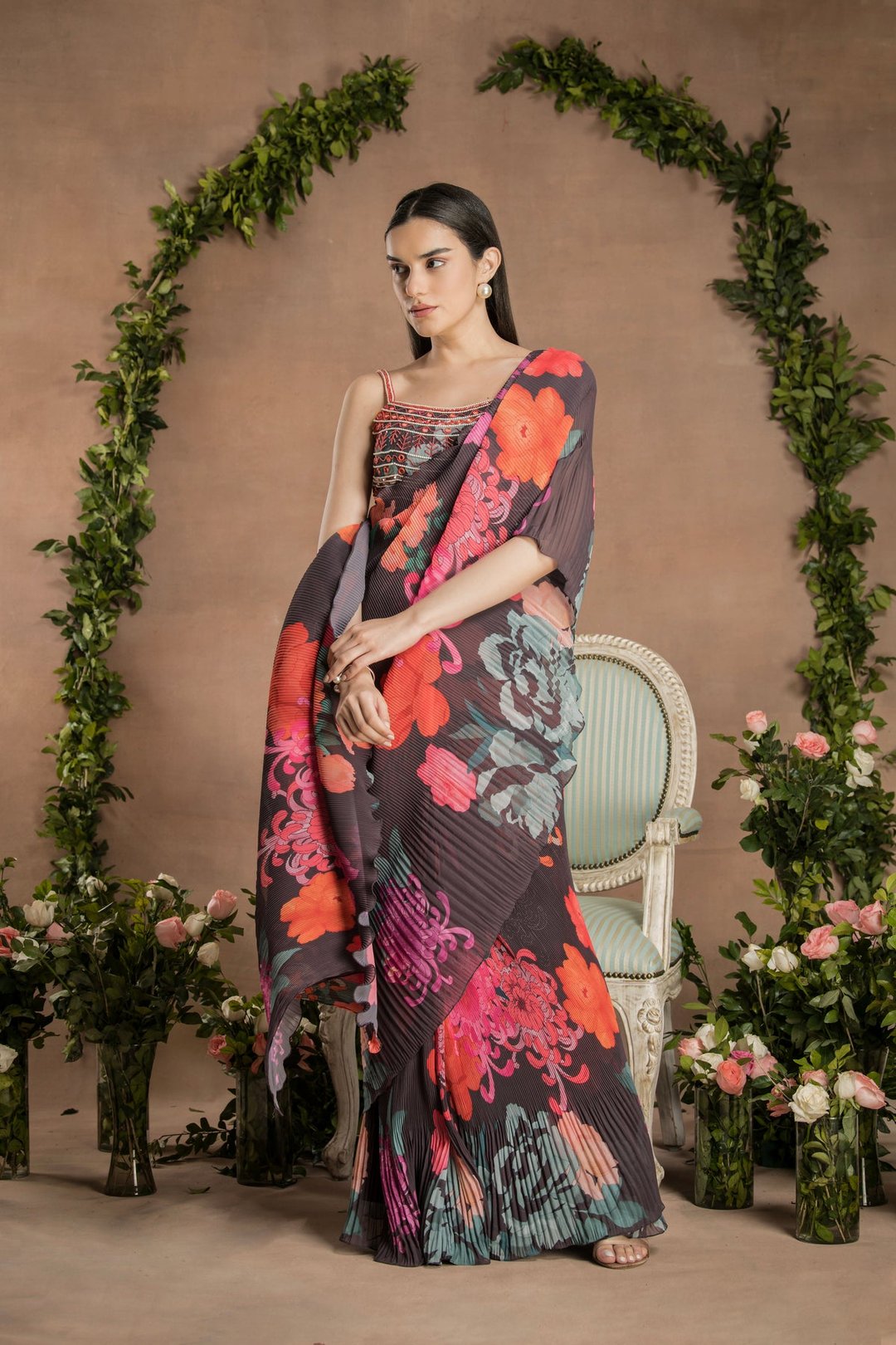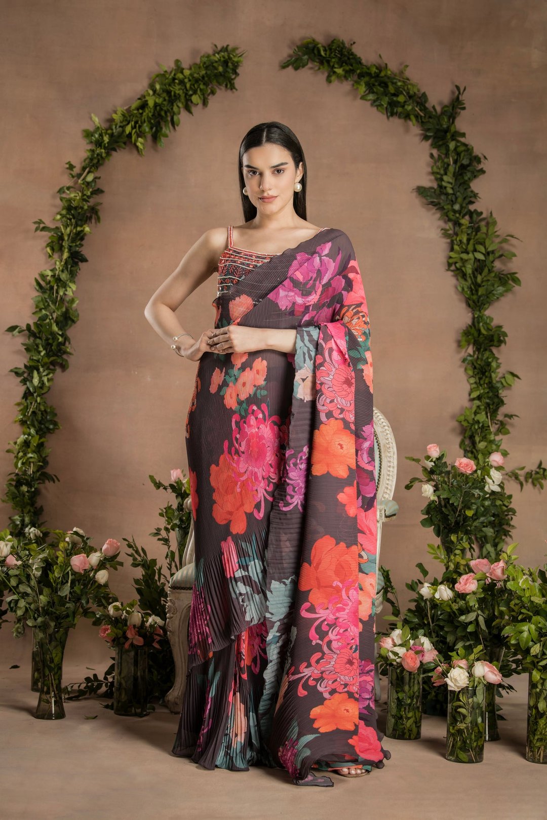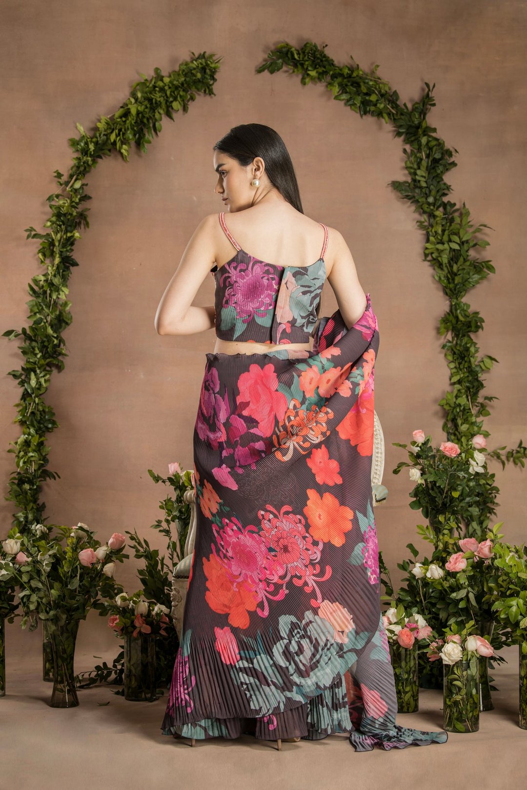 Pre-Draped Dark Chocolate Saree