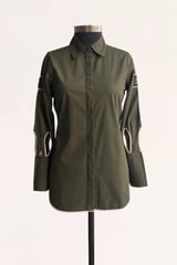 Olive Relaxed-Fit Shirt with Embellished Bug Motif