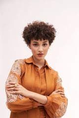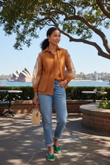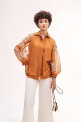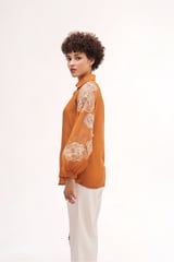 Copper Chanderi Organza Shirt with Embroidered Sleeves