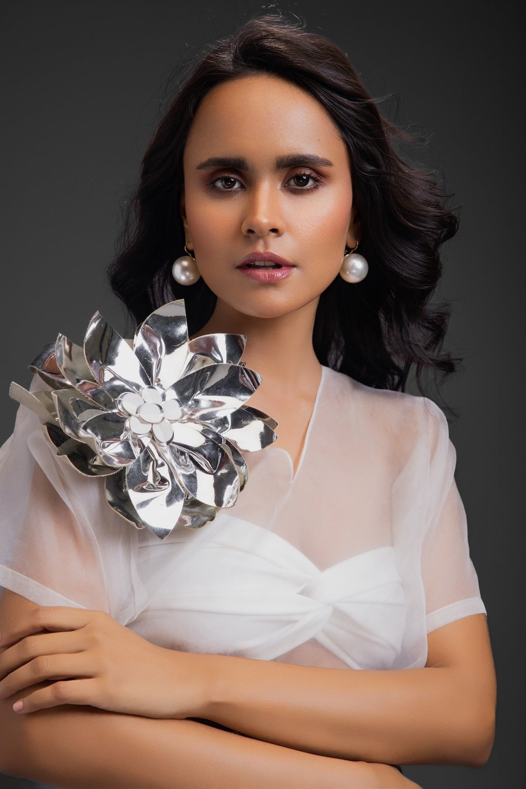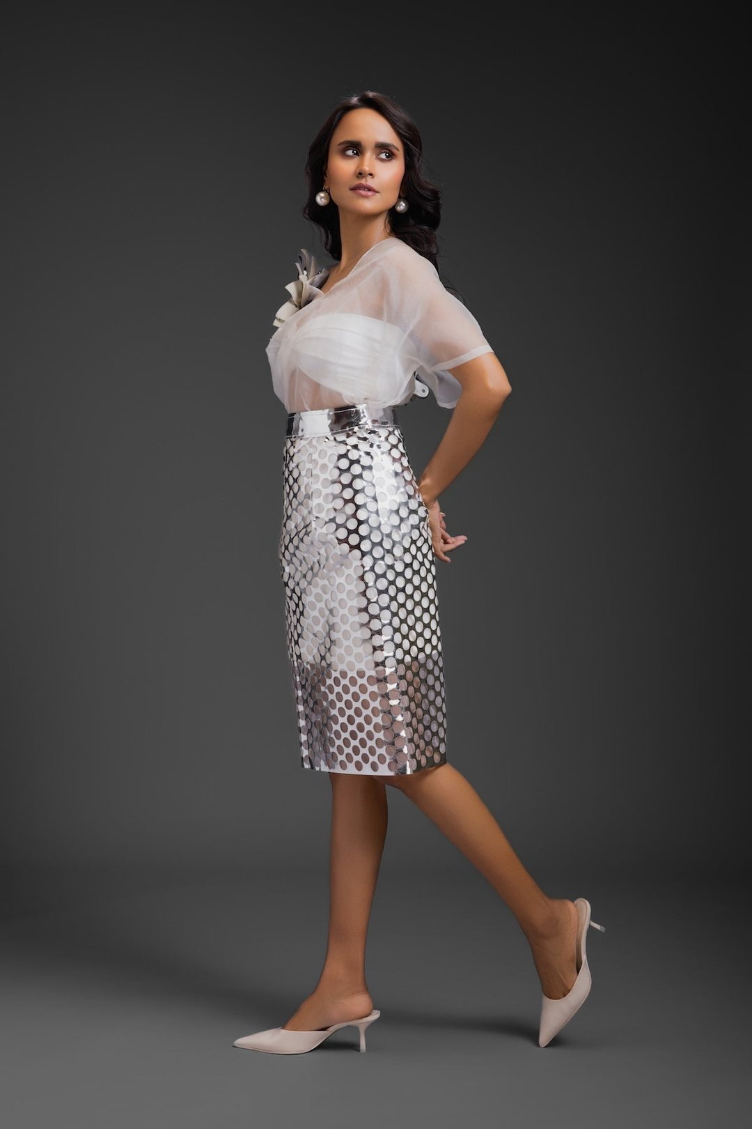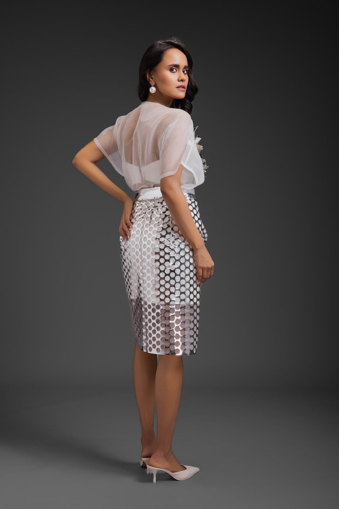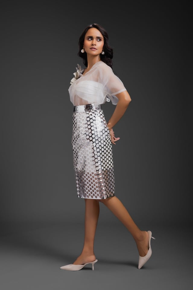 White Sheer Top with Silver Skirt
