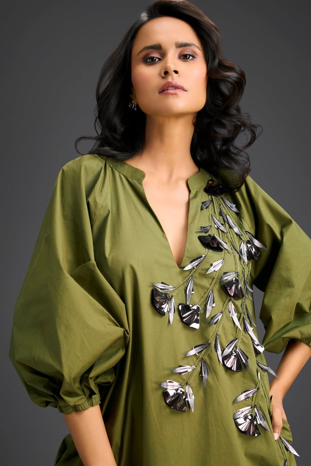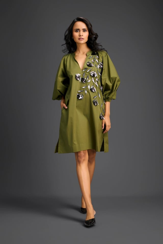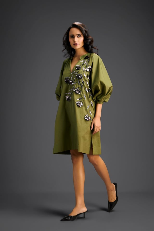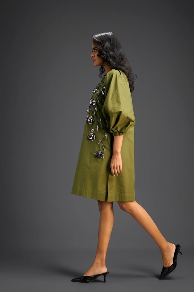 Rust Metallic Floral Embroidered Dress