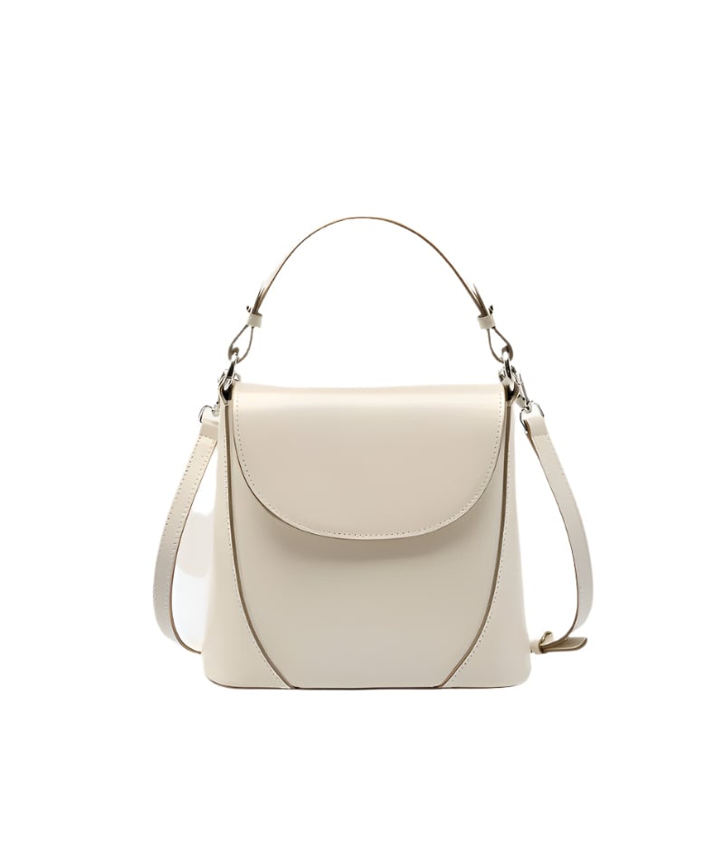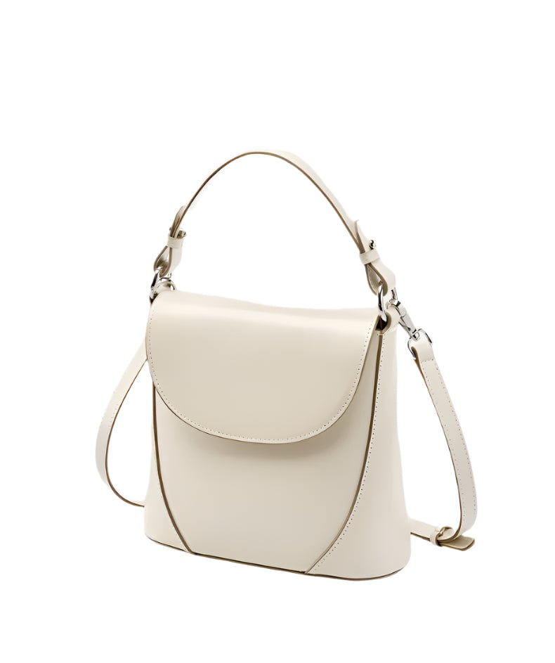 Vienna Ladies Leather Structured Bucket Bag Ivory
