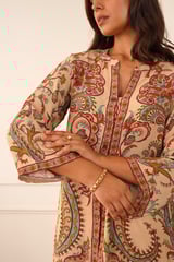 Beige Printed Crepe Set