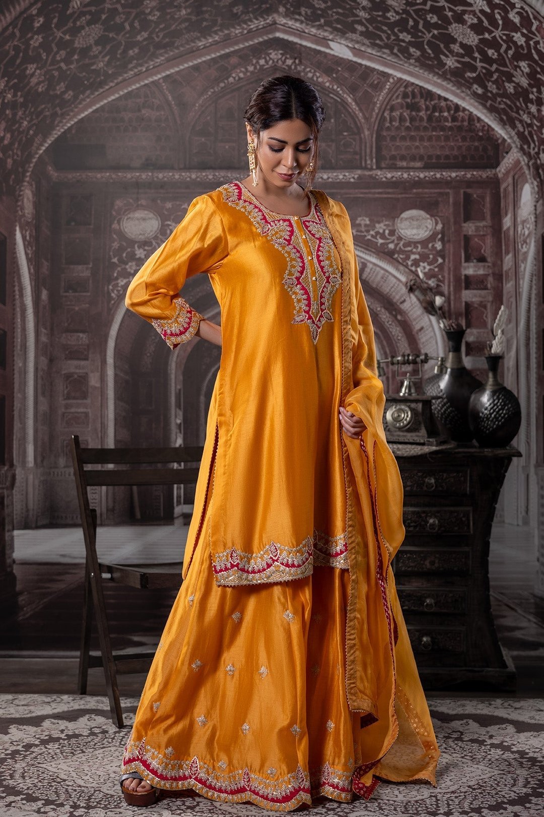 Zariyah Mustard Tila Work Set