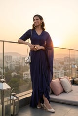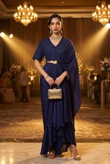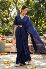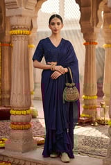 Navy Blue Draped Saree Set with Embroidered Blouse