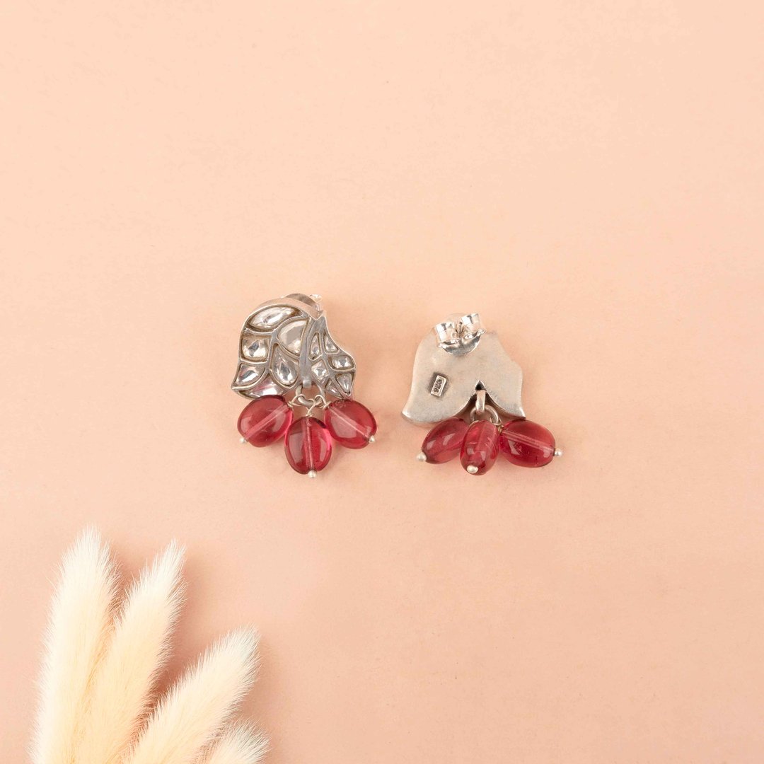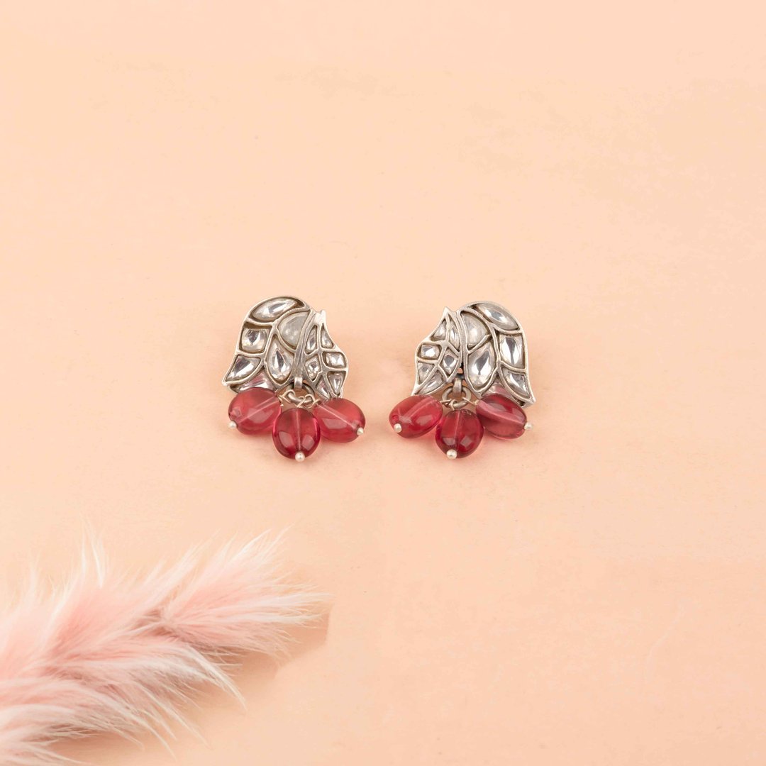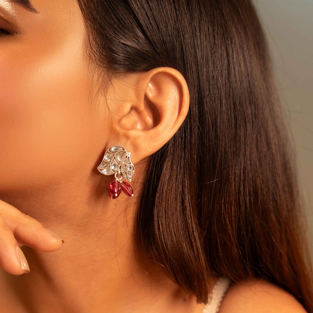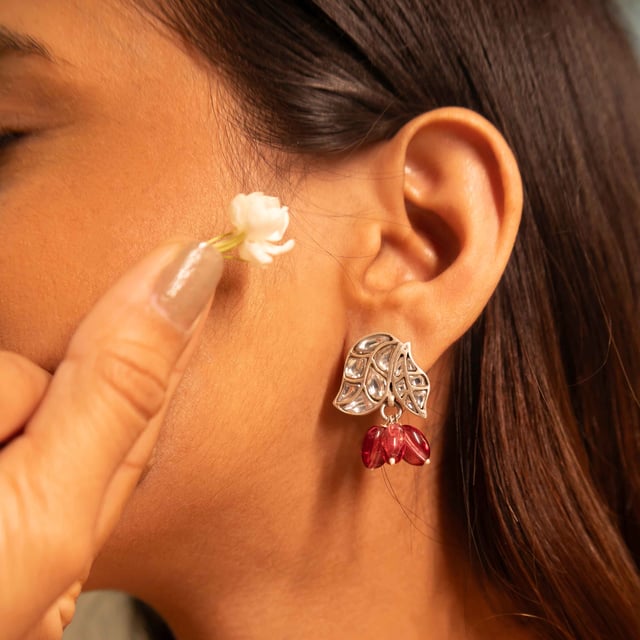 Essence Dual Leaf Kundan Pink Drop Earring