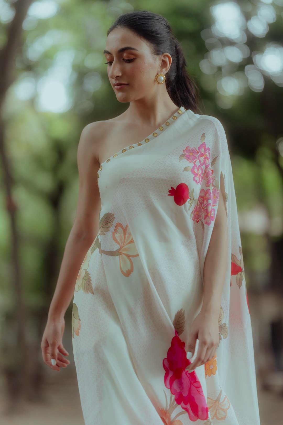 Rose and Anar Print One Shoulder Dress