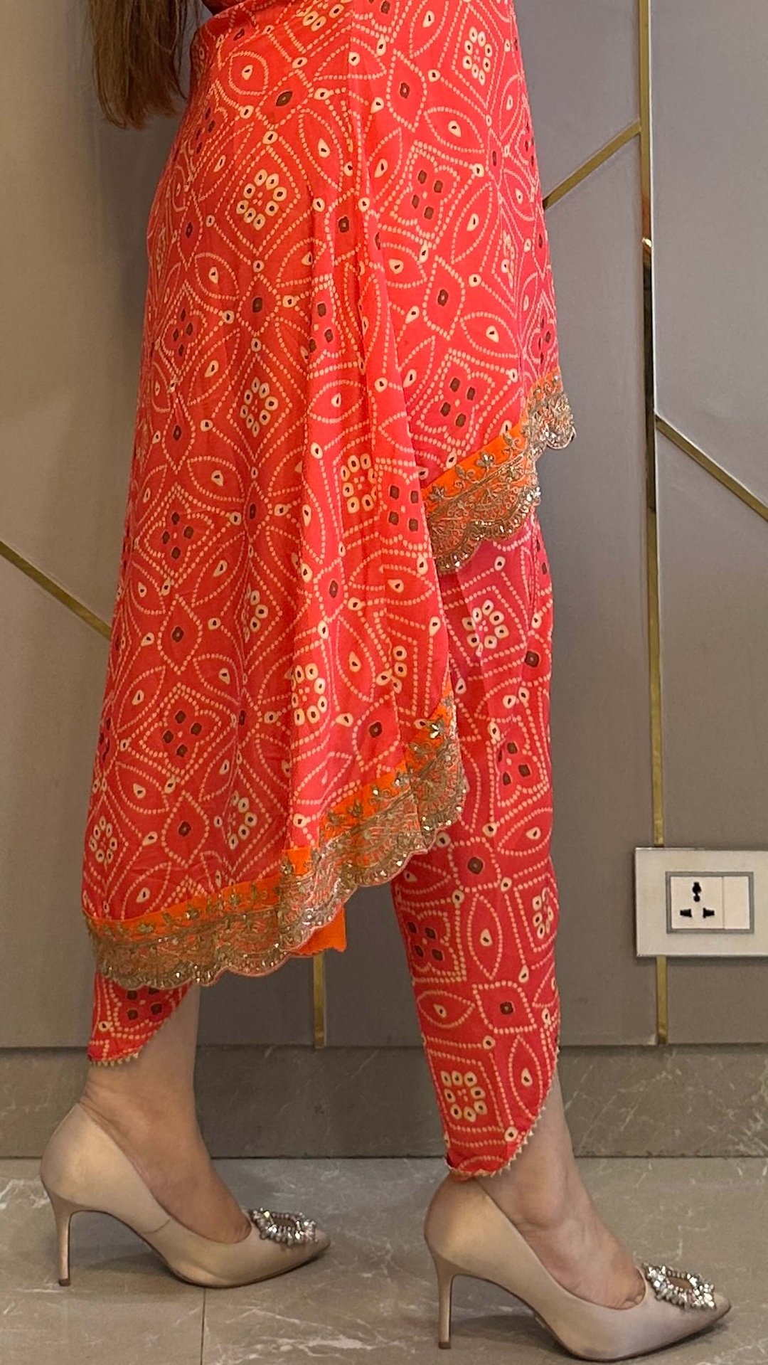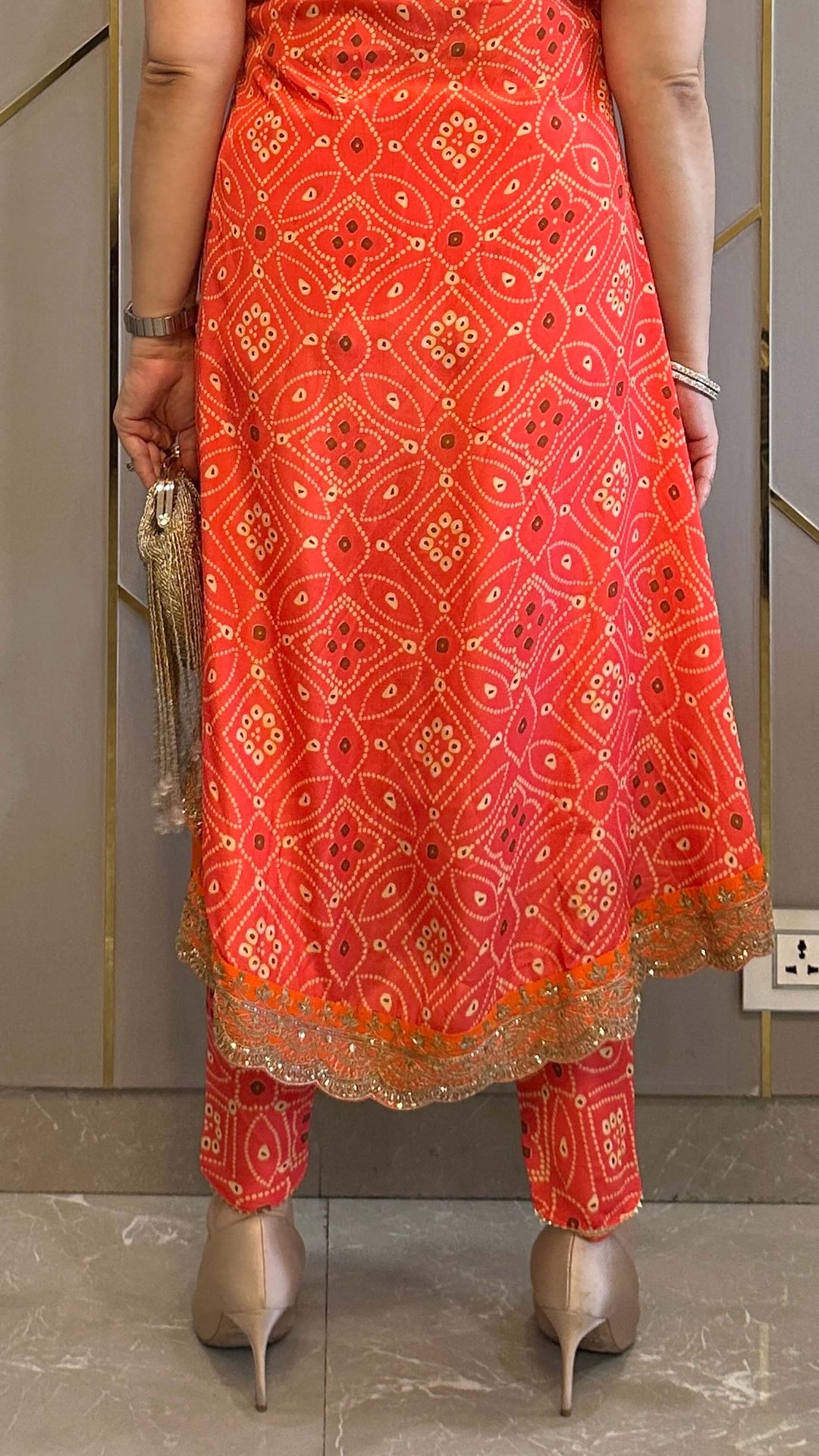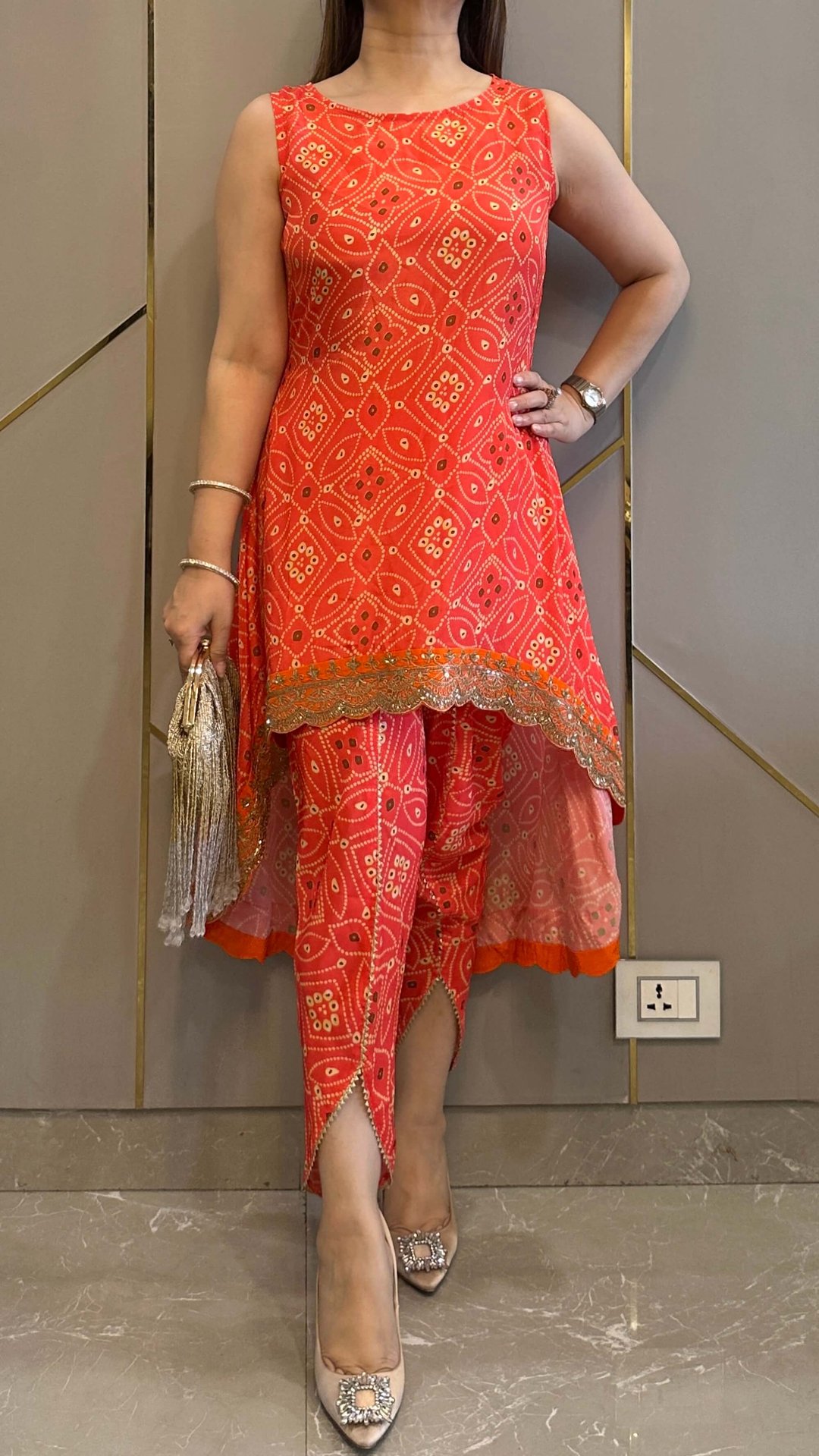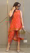 Orange Bandhej High Low Embroidered Co-Ord