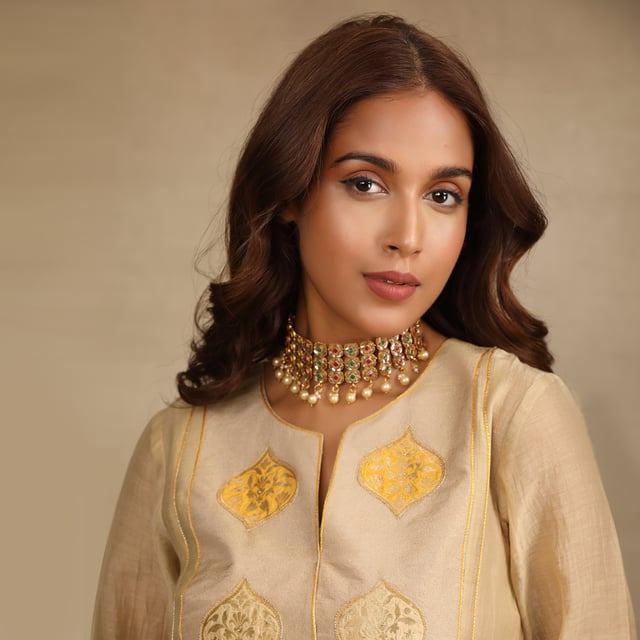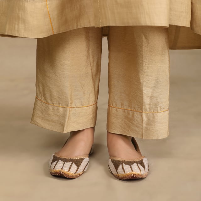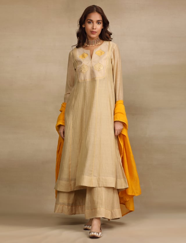 Beige Yellow Skirt Patch Anarkali Suit Set