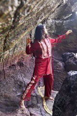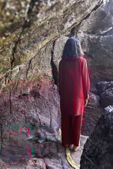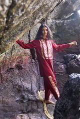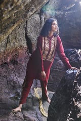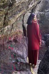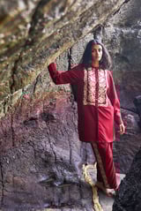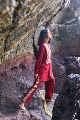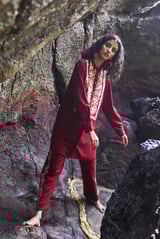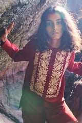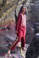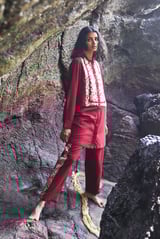 Cherry Red Straight-Leg Trousers with Side Embroidery