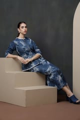 Dark Blue Ombre Sequin Denim Pencil Maxi Skirt
