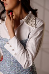Blue Tweed Mini Dress with Embellished Collar