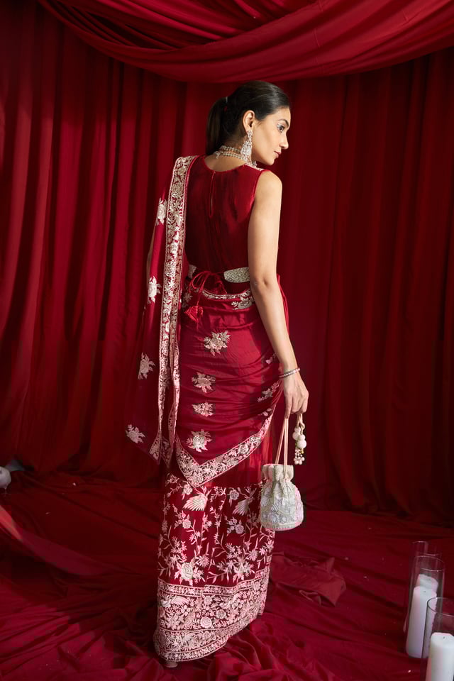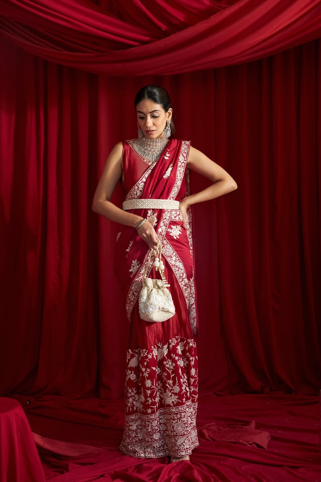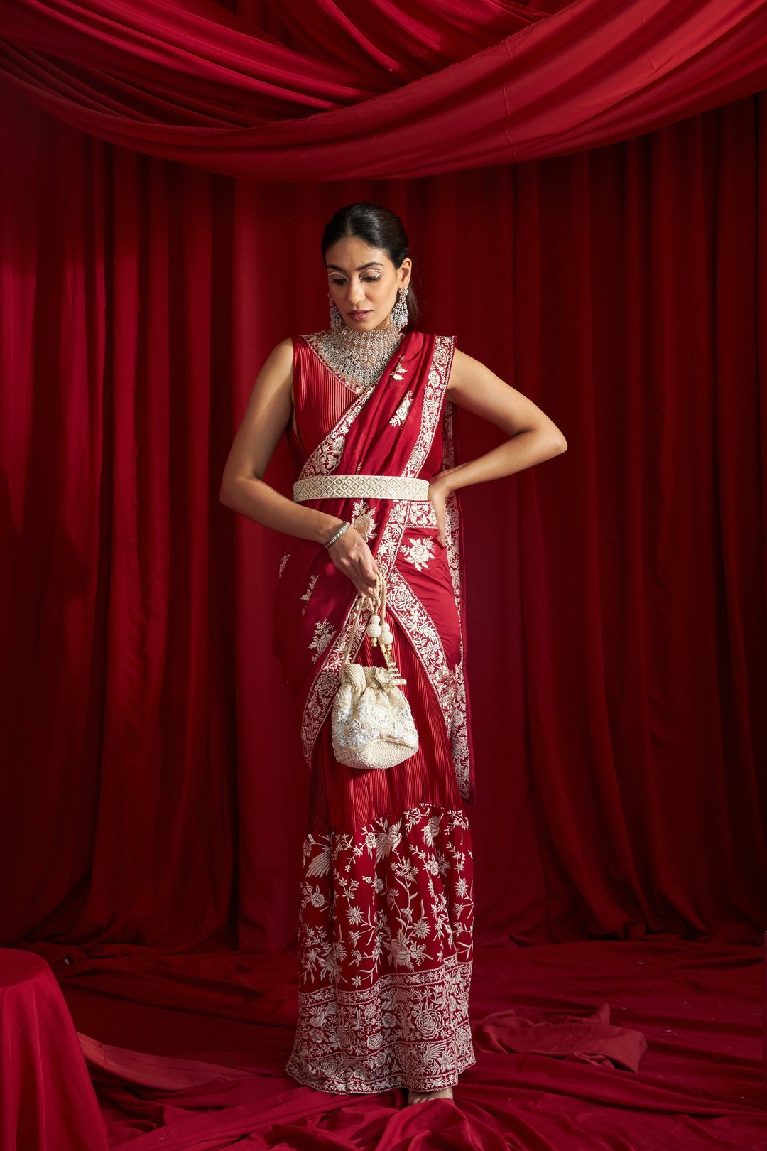 Classy Pleated Gown Saree with Gara Palla and Belt