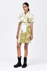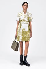 Straight Fit Half Sleeve Coat Dress with Belt