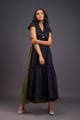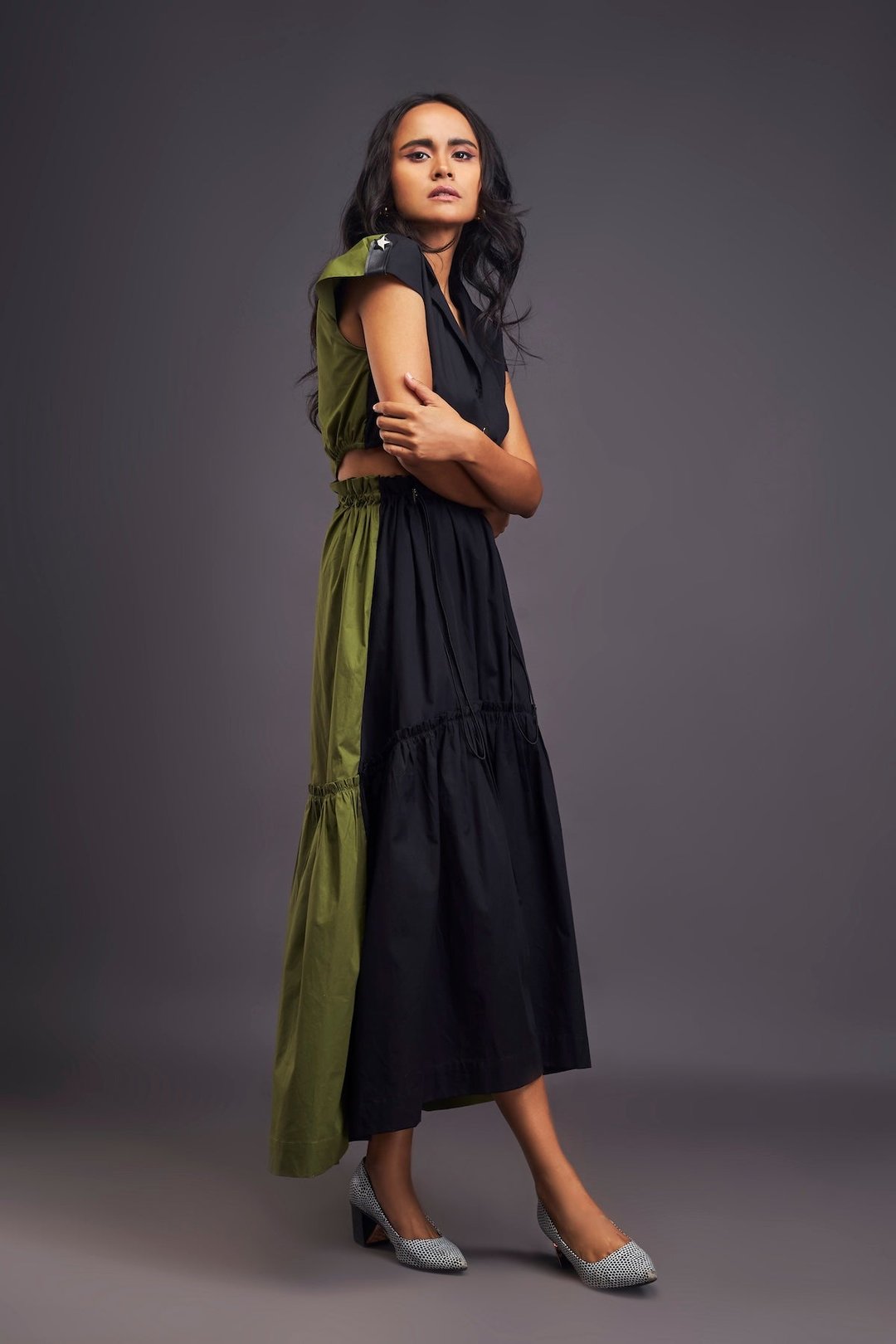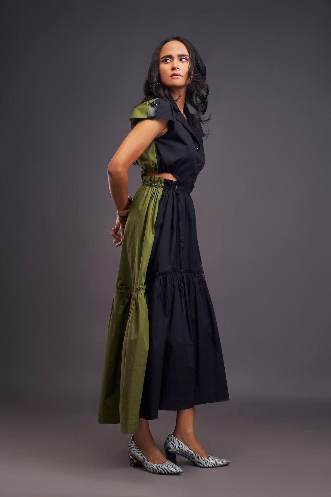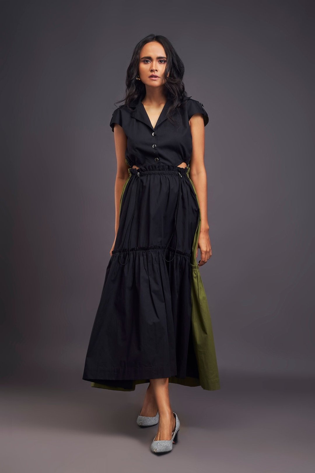Lapel Collar Long Dress with Side Cutouts