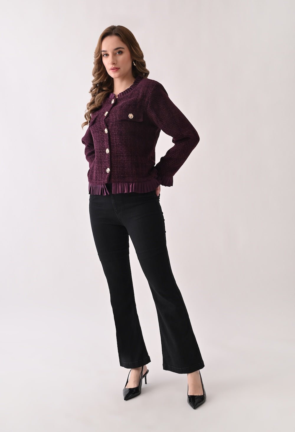 Blazer with Golden Buttons and Frills