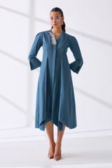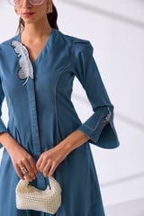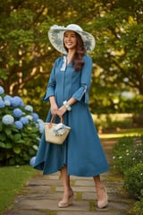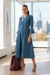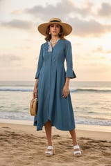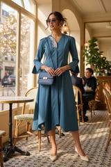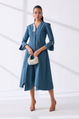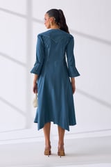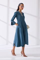 Petrol Cotton Poplin Fit and Flare Midi Dress