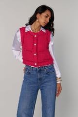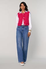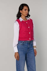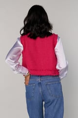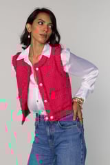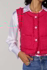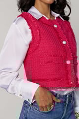 Fuchsia Pink Cropped Tweed Vest with Frayed Trim