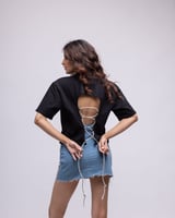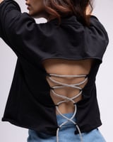 Backless t-shirt with rhinestone rope detail