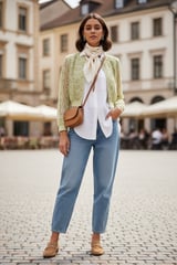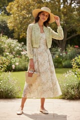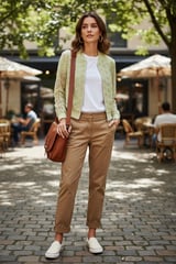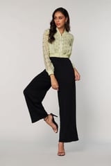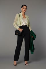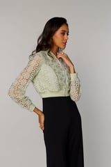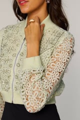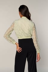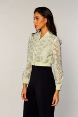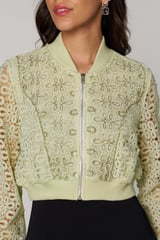 Green Cropped Lace Bomber Jacket with Zip Front