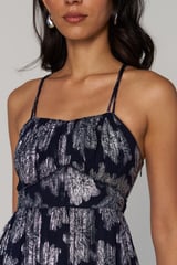 Blue Lurex Square-Neck Maxi Dress with Criss-Cross Back