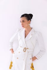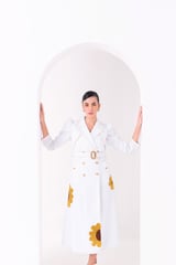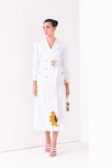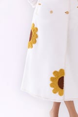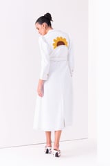 White Denim Trench Midi Dress with 3D Floral Appliqué