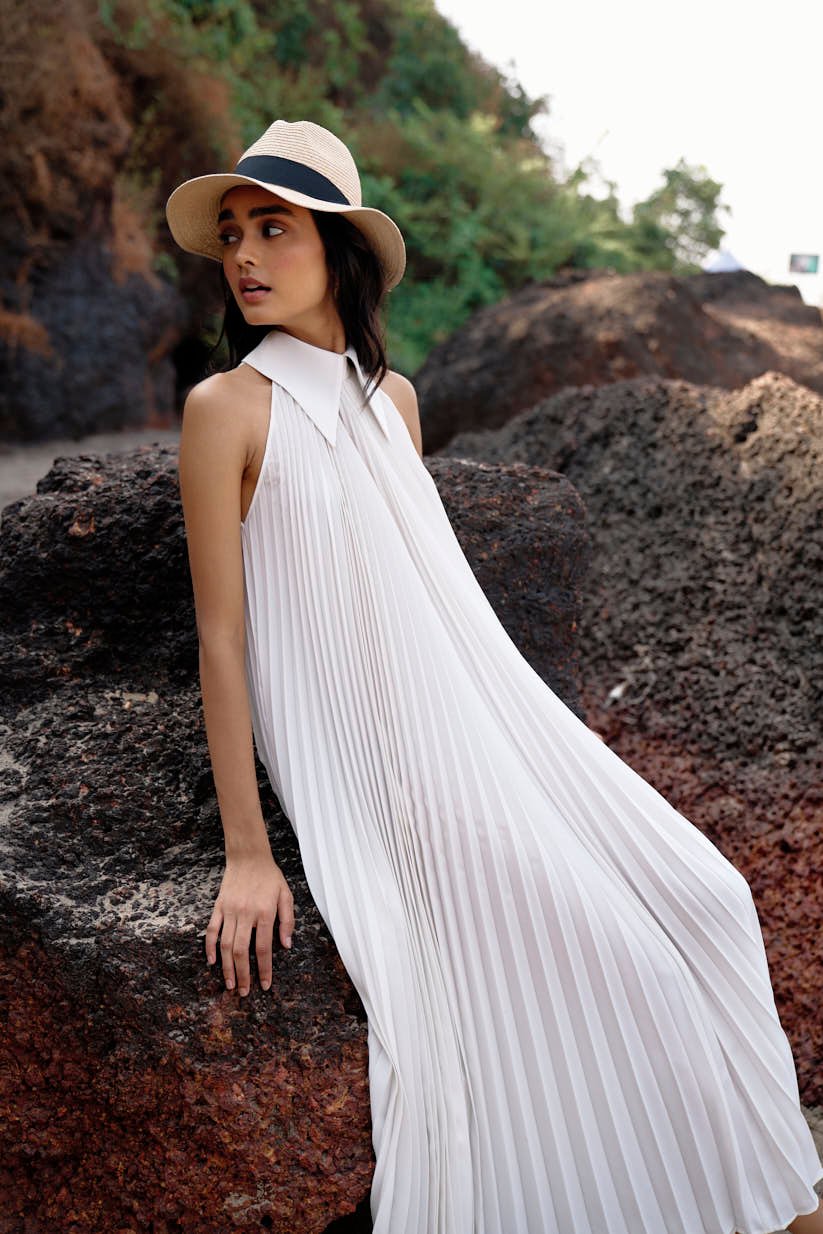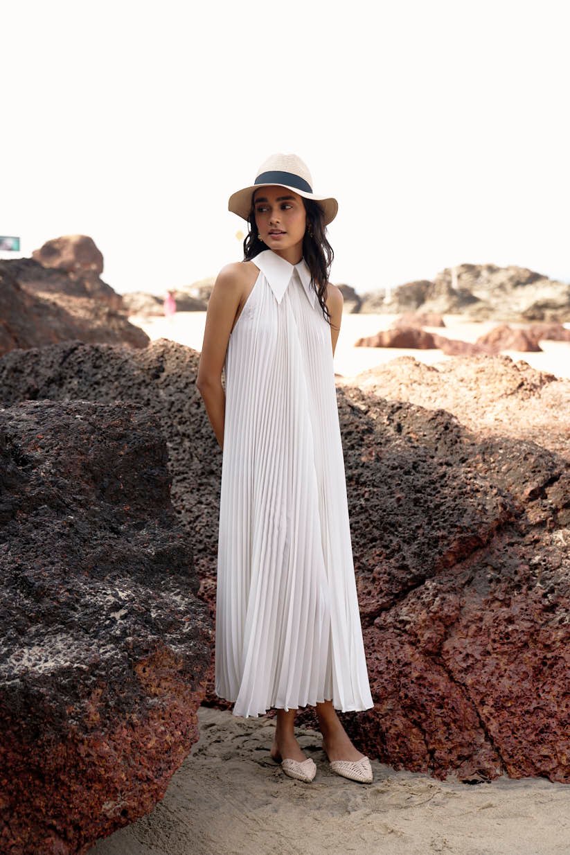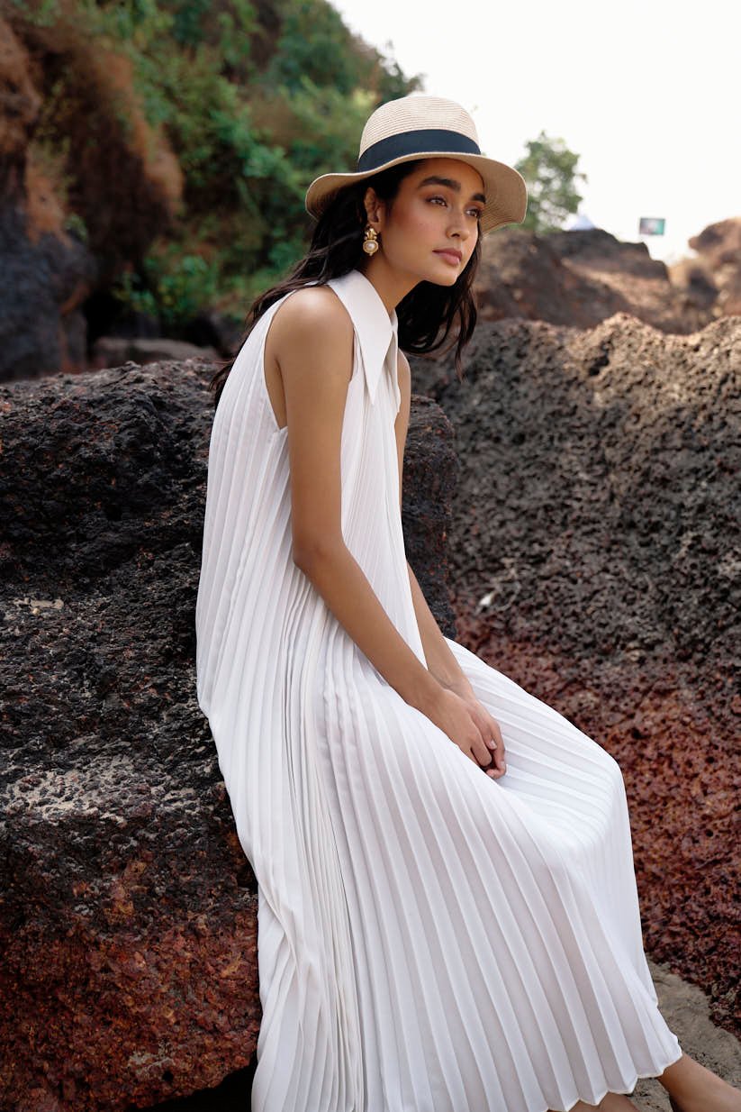 White Pleated Dress