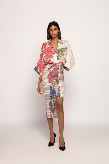 Periwinkle Bandhani Print Smocked Skirt Ivory