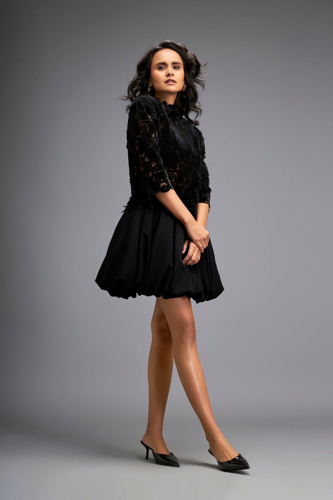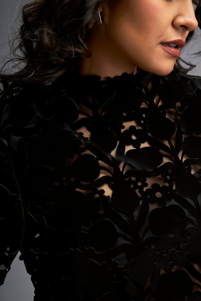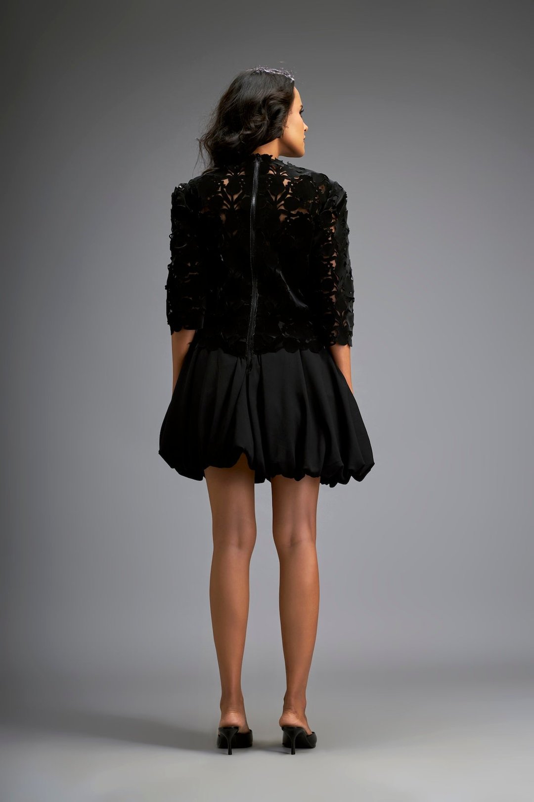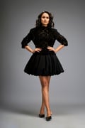 Floral-Cut Velvet Bubble Dress with Voluminous Bottom