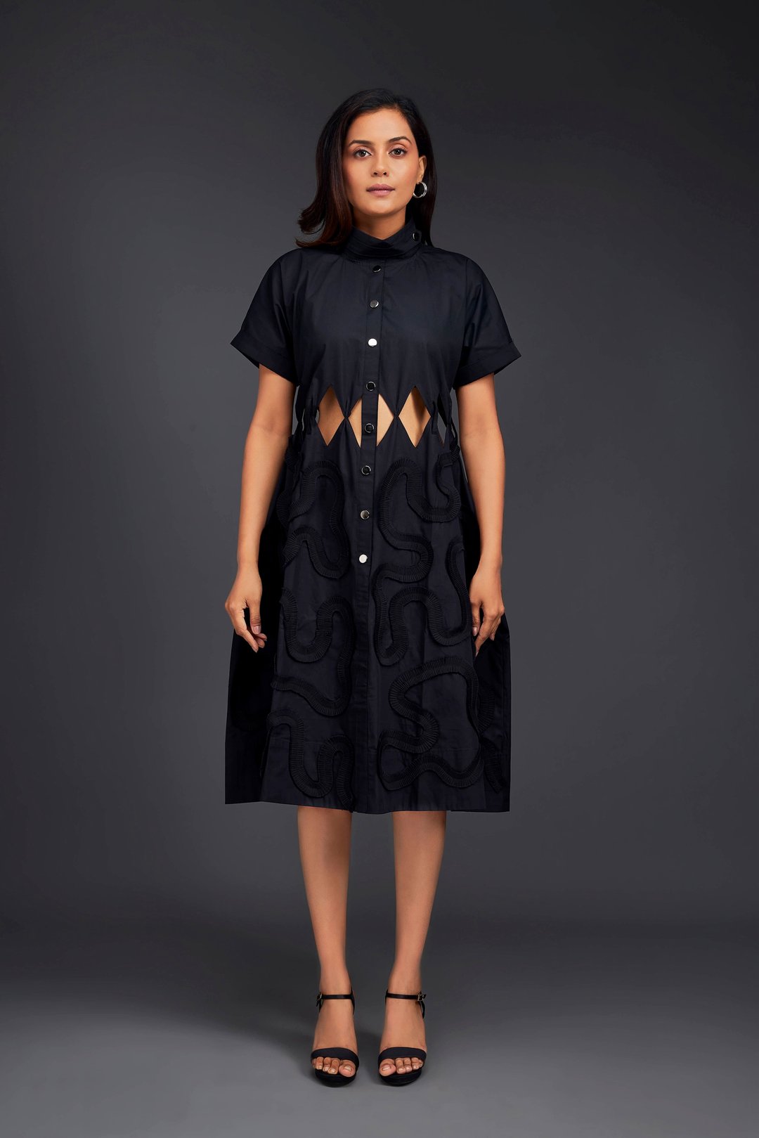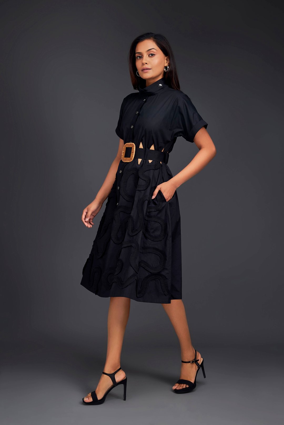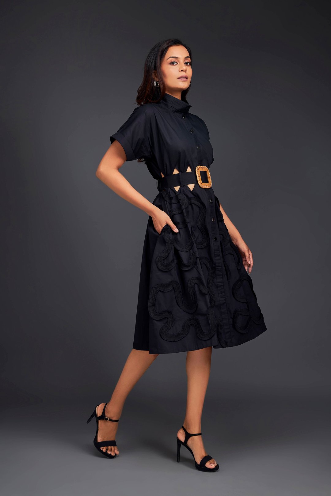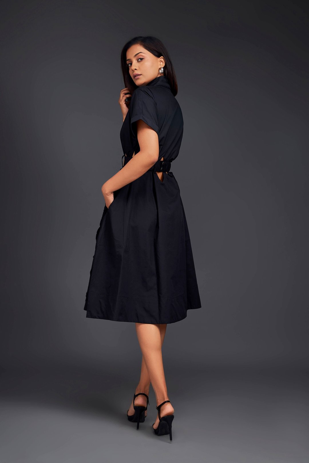 A-Line Button Down Dress with Waist Cutouts Comes with Belt