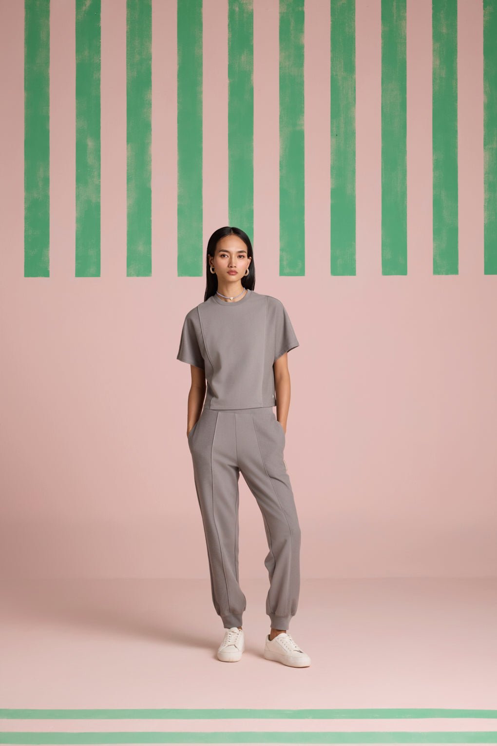 Aeris Panel Sleeve Co-Ord Set - Circular Grey