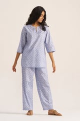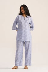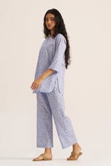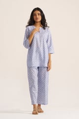 Powder Blue and White Printed Cotton Co-ord Set