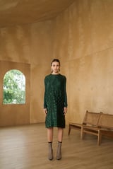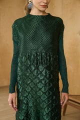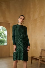 Bottle Green Textured Pleated Midi Dress