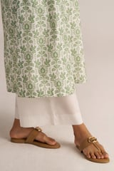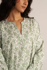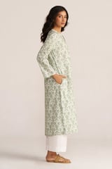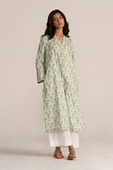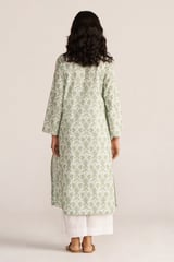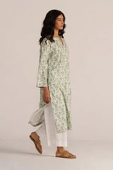 Light Grass Green and White Floral Cotton Straight Kurta